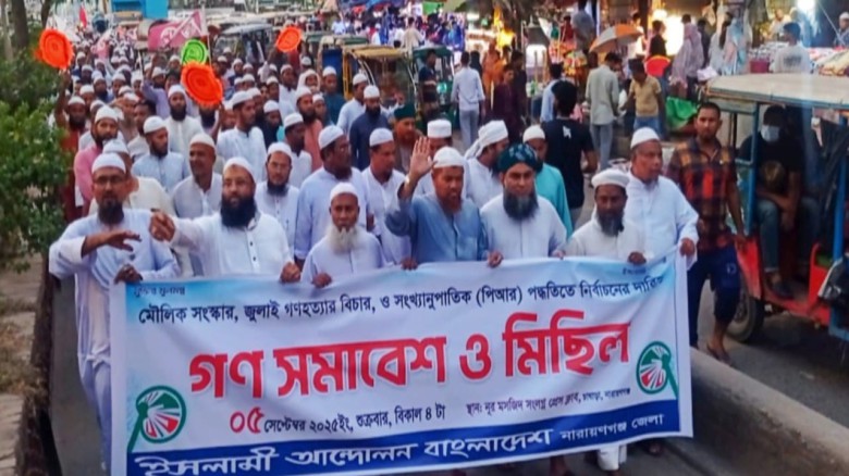 শুক্রবার ( ৫ সেপ্টেম্বর ) বিকেলে চাষাড়া প্রেসক্লাব চত্বরে ইসলামী আন্দোলন বাংলাদেশ নারায়ণগঞ্জ জেলা শাখার আয়োজনে গণ সমাবেশ ও মিছিলে প্রধান অতিথি হিসেবে উপস্থিত ছিলেন ইসসামী আন্দোলন বাংলাদেশ এর যুগ্ম মহাসচিব ইঞ্জিনিয়ার আশরাফুল আলম।
